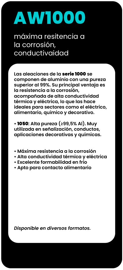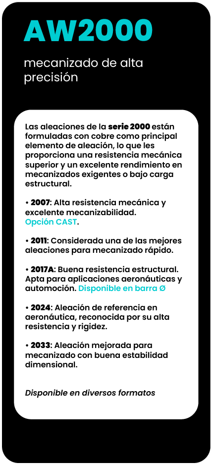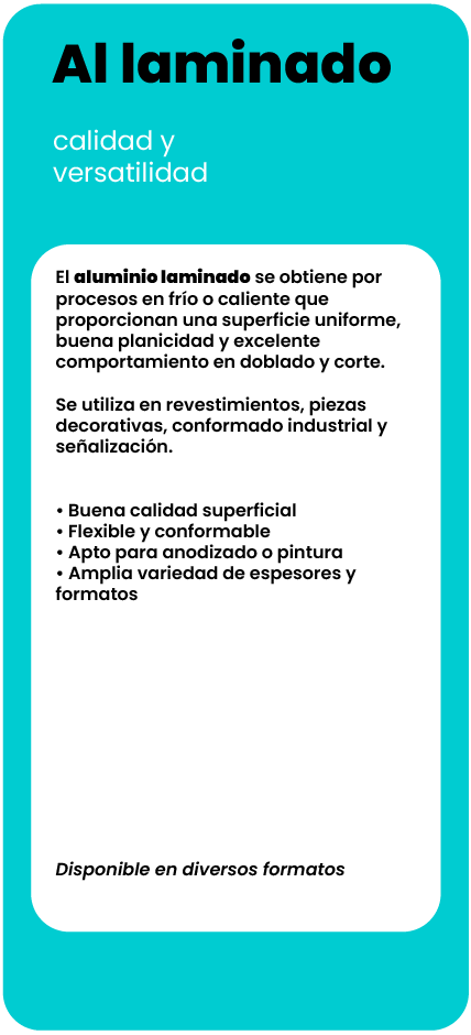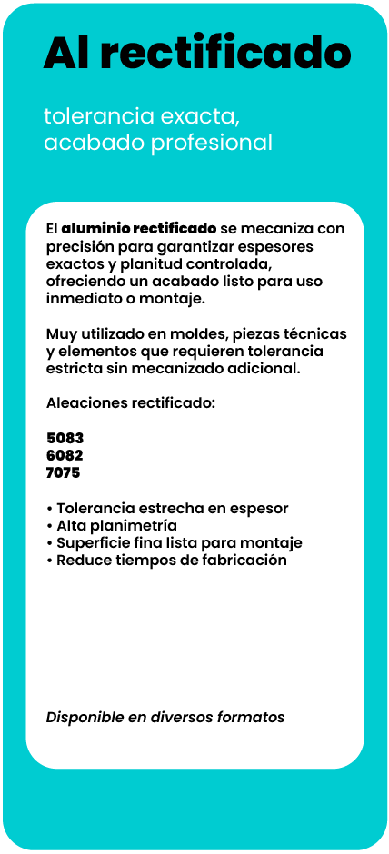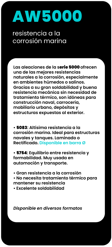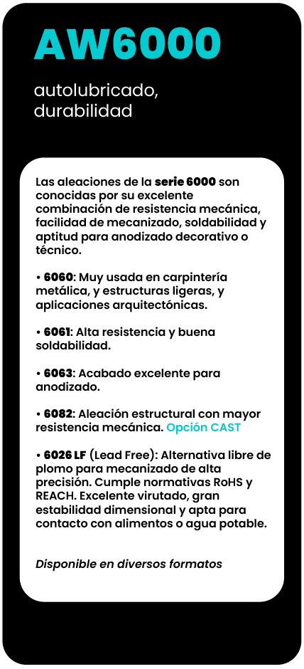 Orientamos al cliente en la elección de la aleación más adecuada según su uso: mecanizado, estructura, soldadura, anodizado o resistencia a la corrosión.